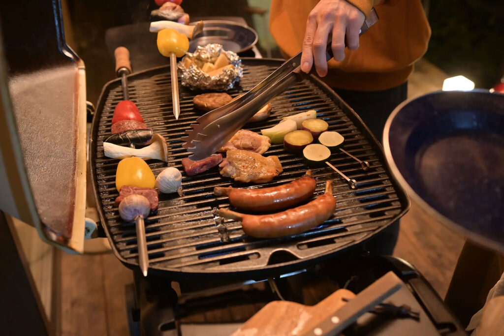 お泊まりのゲストルームで、プライベートに楽しんでいただける四万温泉の温泉グランピング施設「温泉グランビング シマブルー」のバーベキュー。