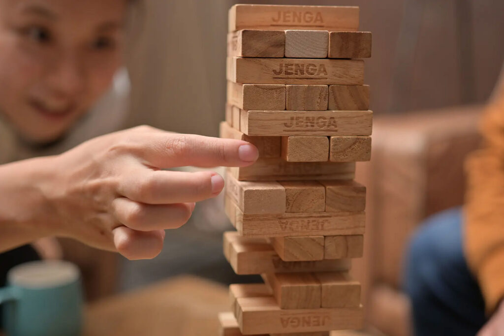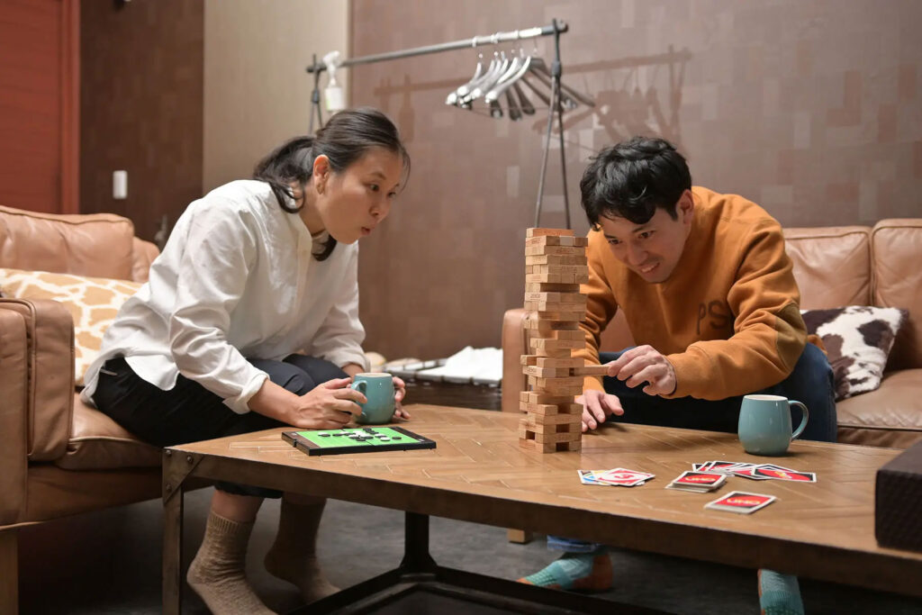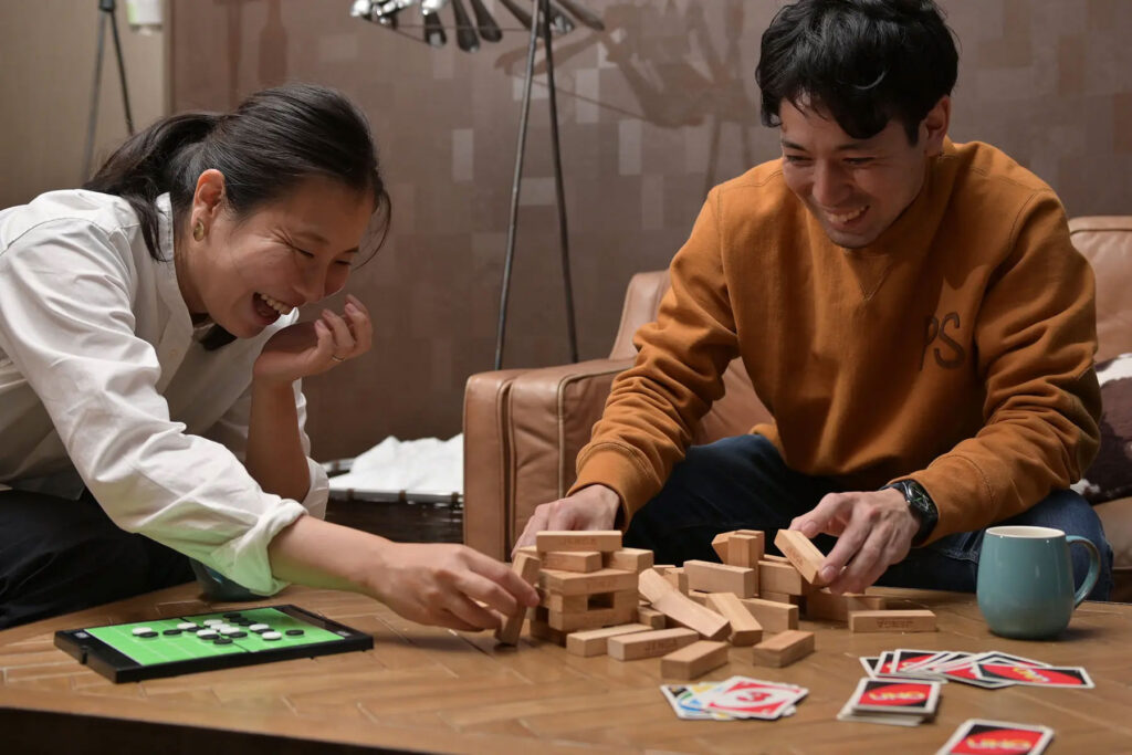 食事が終わったあとは、1974年にイギリスで生まれた定番ゲーム「ジェンガ」などいかがでしょう?積み上げたブロックパーツを相手と交互に抜き取るジェンガは、シンプルだからこそ飽きが来ないですよね。