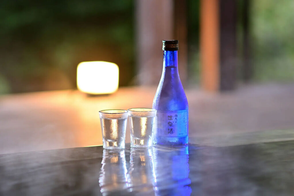 遊んだ後は、ゲストルームに付いた専用露天風呂でしっかり温まってください。源泉掛け流しの湯とともに楽しむ日本酒もまた、温泉グランピングの醍醐味の一つなんです。
