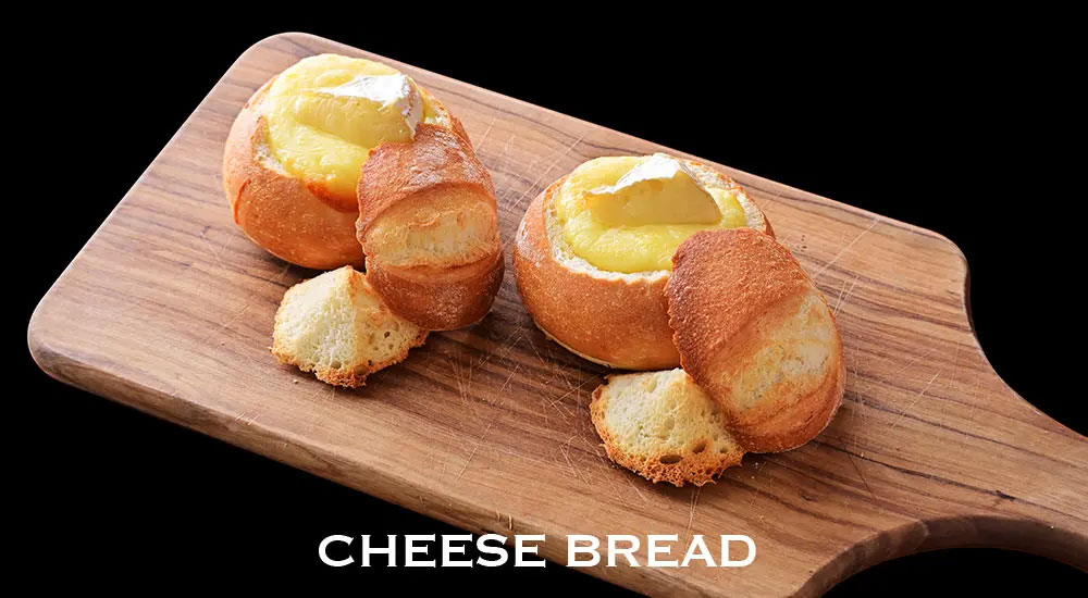 群馬県の桐生酵母パンを使用したシマブルー特製チーズパン。2種のチーズがとろける人気のメニューです。