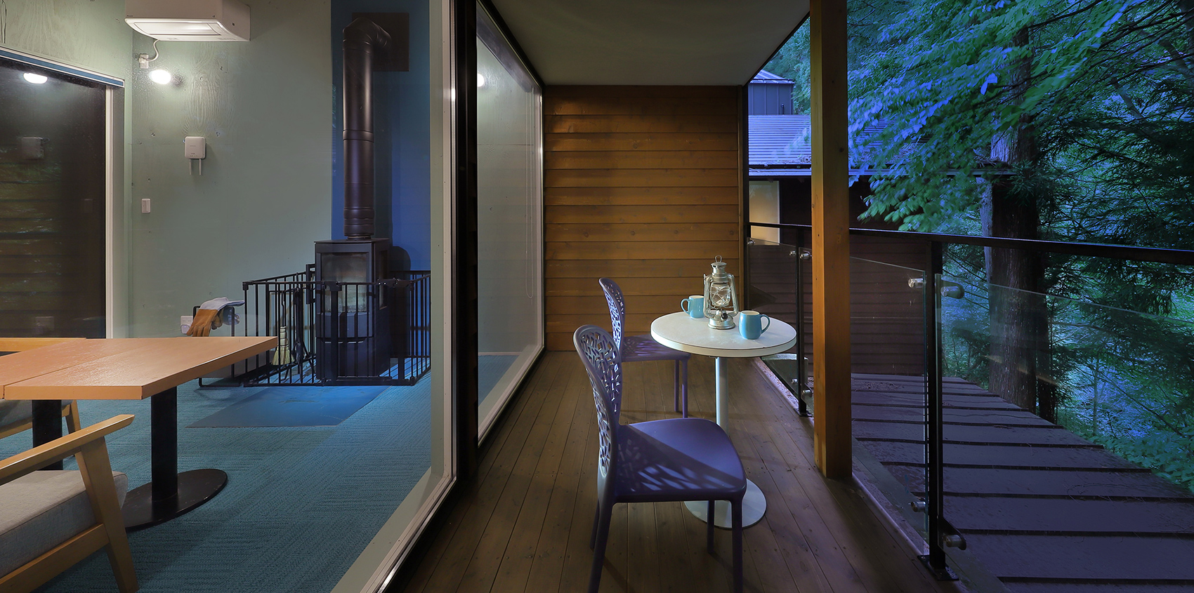 開放感たっぷりのBBQテラスからは四万川渓谷がご覧いただけます。