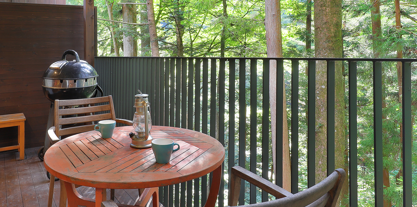 | 防寒用具 | 寒い時期でも快適にBBQを楽しんでいただけますよう、テラスにはストーブとブランケットをご用意しています。また、脚全体を毛布付のカバーで覆い、遠赤外線で暖める足元ヒーターもご利用いただけます。 |