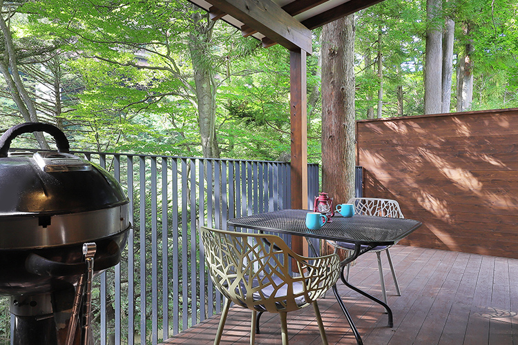 | 防寒用具 | 寒い時期でも快適にBBQを楽しんでいただけますよう、テラスにはストーブとブランケットをご用意しています。また、脚全体を毛布付のカバーで覆い、遠赤外線で暖める足元ヒーターもご利用いただけます。 |