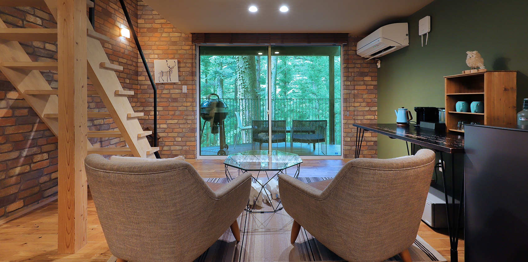 | 客室設備 | 冷蔵庫/冷暖房/Bluetoothスピーカー/電気ケトル/紅茶/コーヒー/お茶/空気清浄機 |