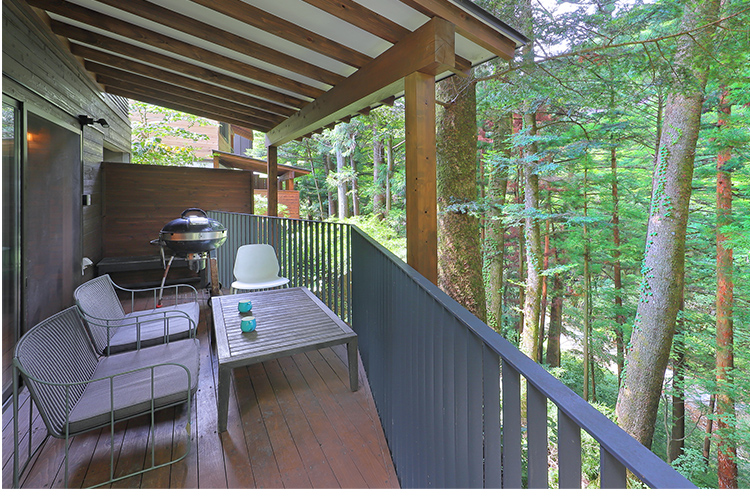 2Fのアウトドアリビングにはハンモックが設置されております。森林浴を楽しみながら読書やお昼寝に!